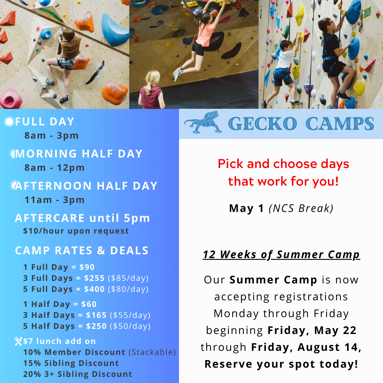 If you have any additional questions please let us know. We are excited to share Gecko Climbing Camps with you all!!